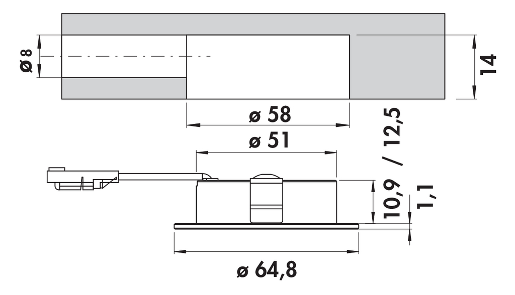 Einbautiefe 14 mm