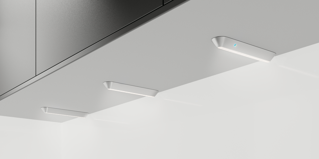 Unterbodenleuchte in abgewinkelter L-Form. Aluminiumdruckgehäuse, Ausleuchtung ohne sichtbare LED-Punkte.Einzelleuchte ohne Schalter oder mit LED Touch Schalter und Dimmer (m. LED Touch S. D.) 4 Watt, 12 V, 3000 K warmweiß 120 Lumen/Watt Dimmfunktion: Helligkeit stufenlos dimmbar 200 mm Zuleitung, 2000 mm Verbindungsleitung mit Ministecksystem zusätzliche Memoryfunktion: die letzte Einstellung wird gespeichert für Einzelleuchte mit LED Touch Schalter und Dimmer (7064236 o. 7064238)