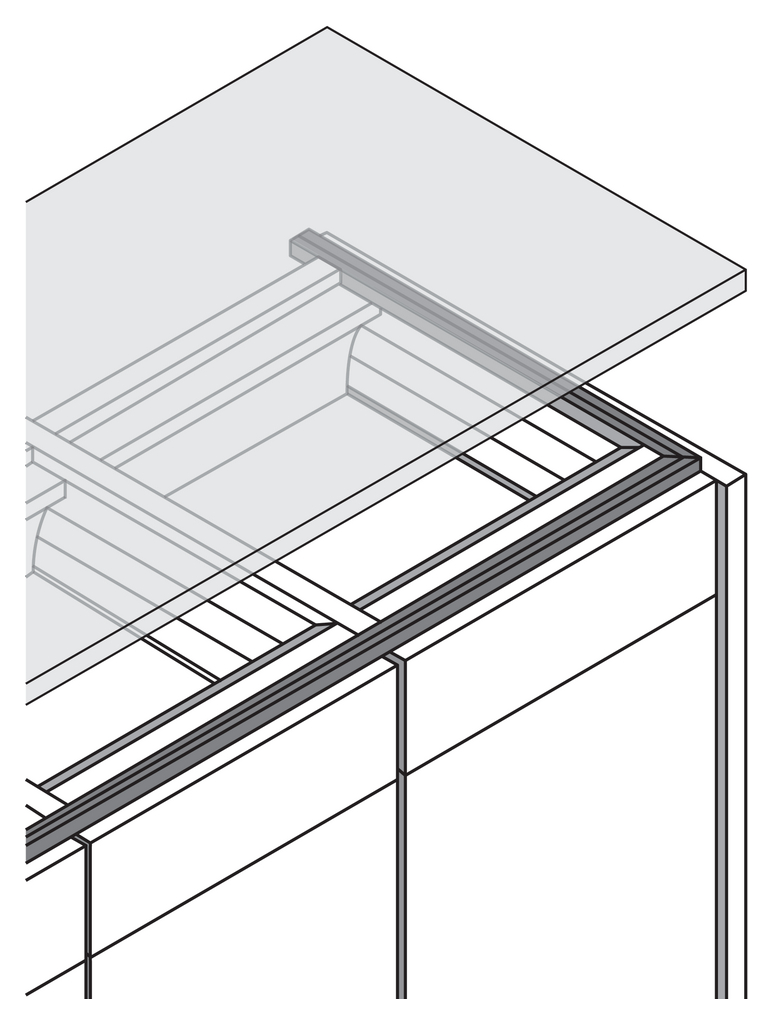 Die Arbeitsplatte muss bauseits mit 16 mm Holzleisten aufgefüttert werden.