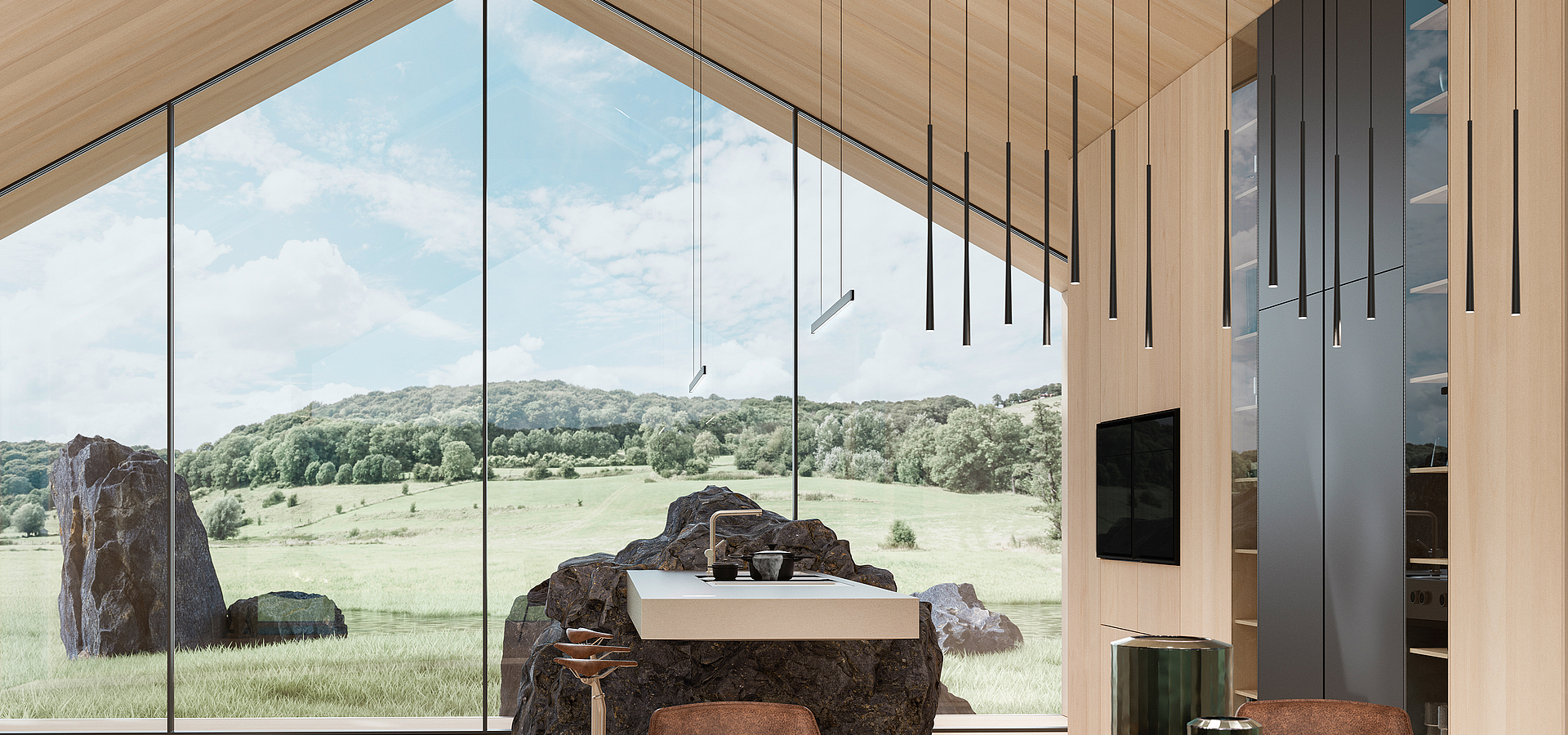 Die lineare Pendelleuchte BORA Horizon schwebt über den Arbeitsflächen, dem Kochfeld oder dem Esstisch und fügt sich unaufgeregt und edel in das Gesamtbild der Küche ein. Die Leuchte ist in drei verschiedenen Farben erhältlich: beruhigendes Moosgrün, elegantes Schwarz und malerisches Roségold. Die hochwertige BORA Horizon unterstützt die freie Sicht auf bestes Essen in guter Gesellschaft.
