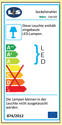 - Diese Leuchte enthält eingebaute LED-Lampen mit den Energieklassen A++ bis A.