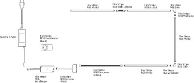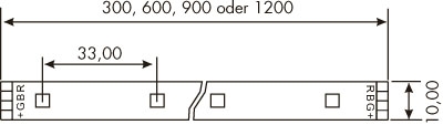 - 3,3 Watt/Meter, LED RGB (Farbwechsel Rot, Gelb, Blau).