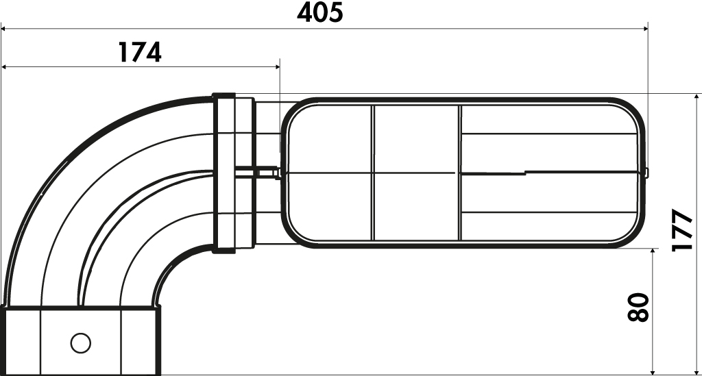 - Das Rohrset erlaubt eine platzsparende Anordnung der Abluftrohre bei Dunstabzugshauben mit Downdraft- bzw. Muldenlüftung,