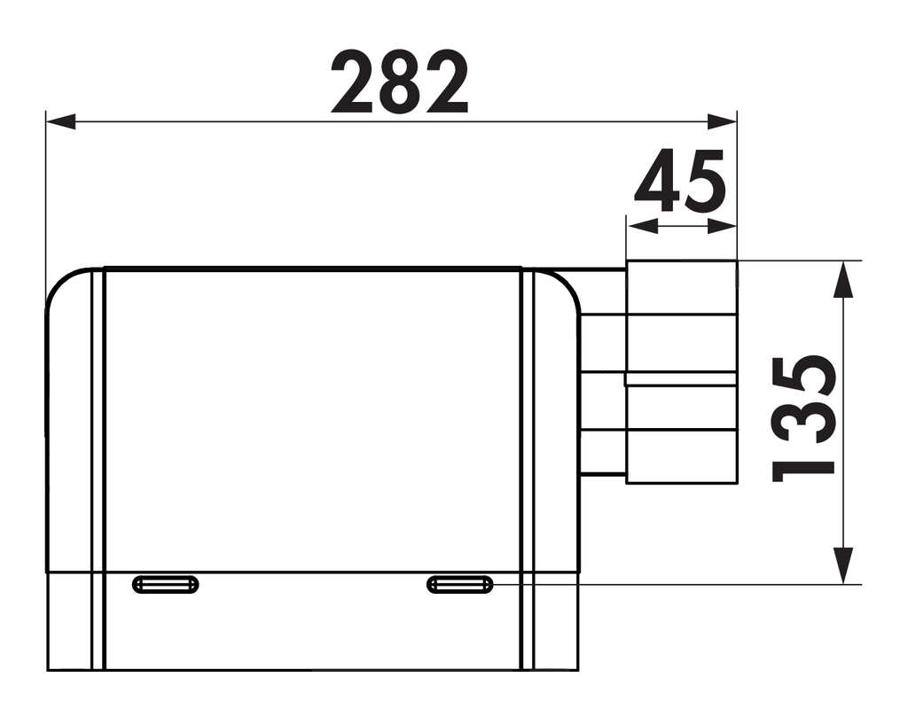 - Anschlussmaß (222 x 89 mm) für direkten Anschluss an das Abzugsystem,