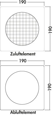 Beide Elemente können als Set direkt nebeneinander oder auch als Einzelelement verwendet werden. Optimale Strömungswerte durch volumenstromgesteuerte Ab- und Zuluftöffnungen. Die Zuluftklappe öffnet nur bei Unterdruck. Bei Einbau mit einem raumluftabhängigen Kamin, stimmen Sie sich bitte mit Ihrem zuständigen Schornsteinfeger ab.,