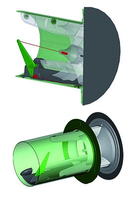 - Mit Anschluss an Rundrohr Ø 125 mm und runder Edelstahlaußenabdeckung.,