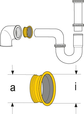 - Ablaufverbinder für verchromte Messing- und Kunststoff-Siphons.