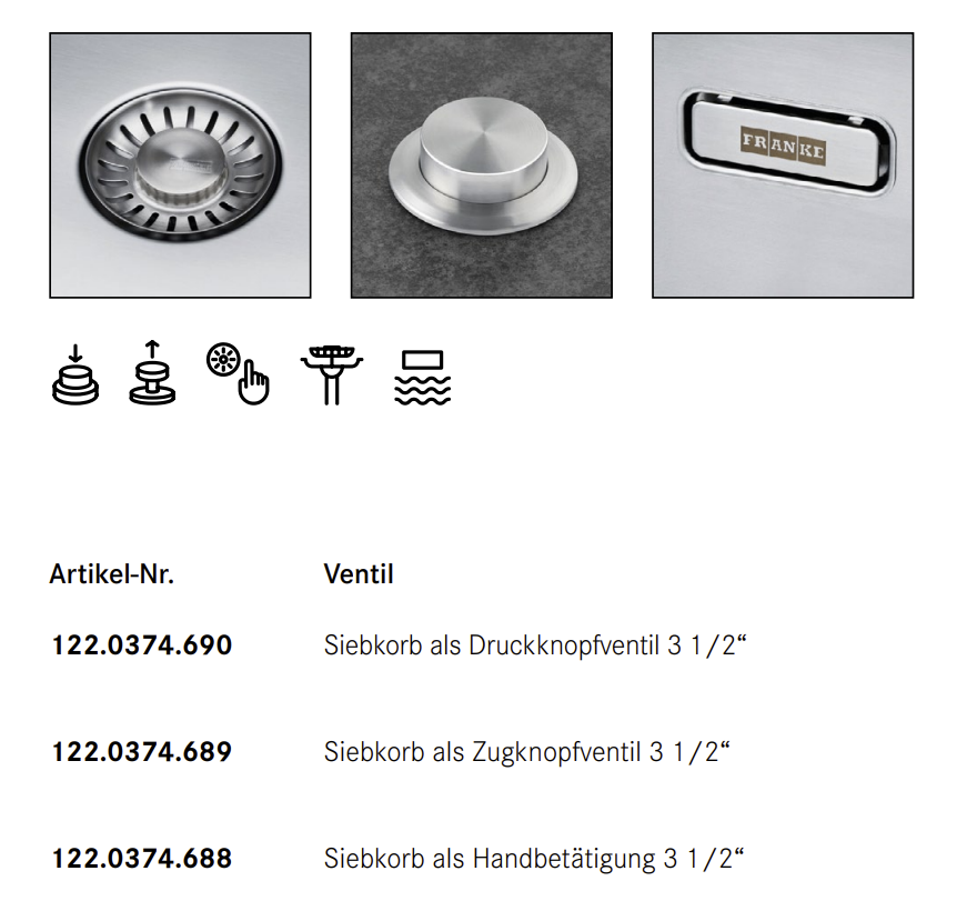 - Becken erhältlich mit 3 unterschiedlichen Ventilarten