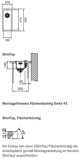 • Einbau SlimTop/Flächenbündig sowie Unterbau