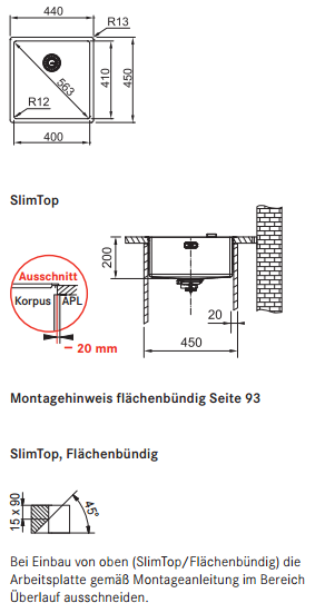 - Einbau SlimTop/Flächenbündig sowie Unterbau