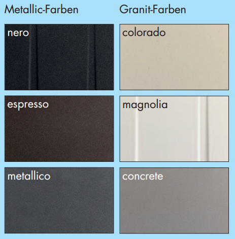 Hochdruck-Armatur Schwenkbereich 360° Keramische Dichtung Bohr-Ø 35 mm 6 Composite-Farben: nero, espresso, metallico, colorado, magnolia, concrete