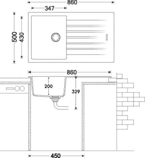 • Ausschnittmaß: ca. 840 x 480 mm.