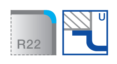 - Moderne Gesamtanmutung durch harmonisches Zusammenspiel von Eck- und Bodenradien und der Seidenglanz-Oberfläche