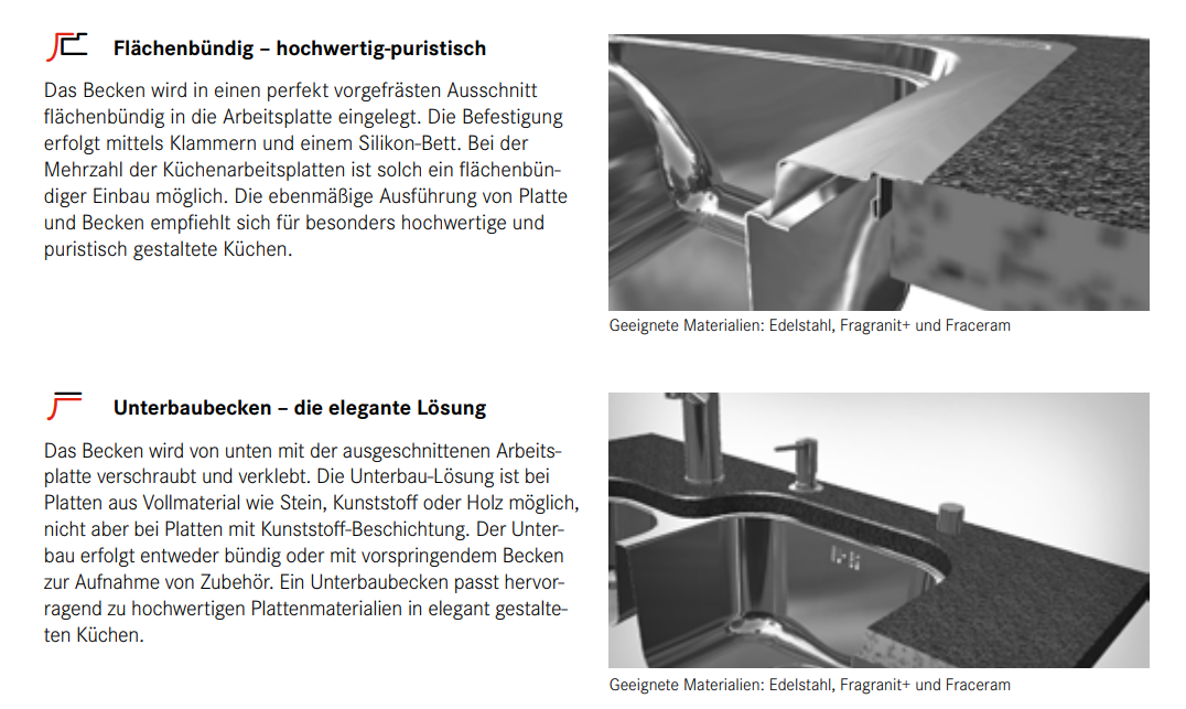 - Spüle für den Unterbau oder flächenbündigen Einbau
