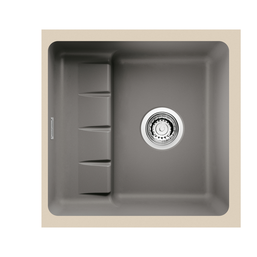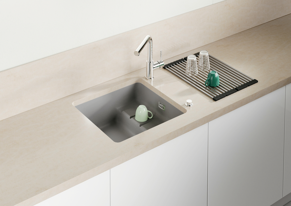 Konzipiert für die randlose Unterbaumontage, schließt die Spülenkontur der PickUP U direkt an den Arbeitsplattenausschnitt an. Ästhetik pur, die eine großzügigere Wirkung des Spülplatzes und des Umfelds auf puristisch elegante Art vermittelt. Sie wird von Planern bei der Kombination mit Arbeitsplatten aus Stein, Beton und keramischen Materialien besonders geschätzt. Das trendige Vierfarben-Konzept der PickUP U bietet vielseitige Gestaltungsmöglichkeiten.