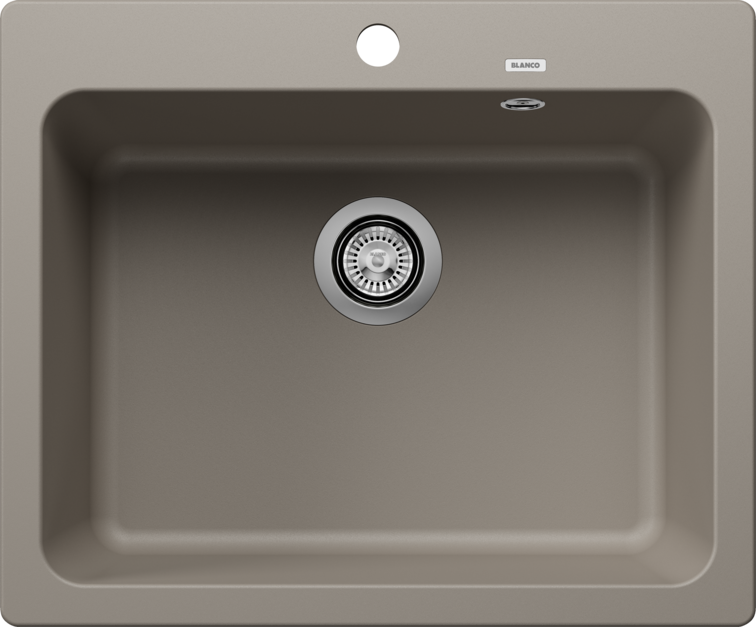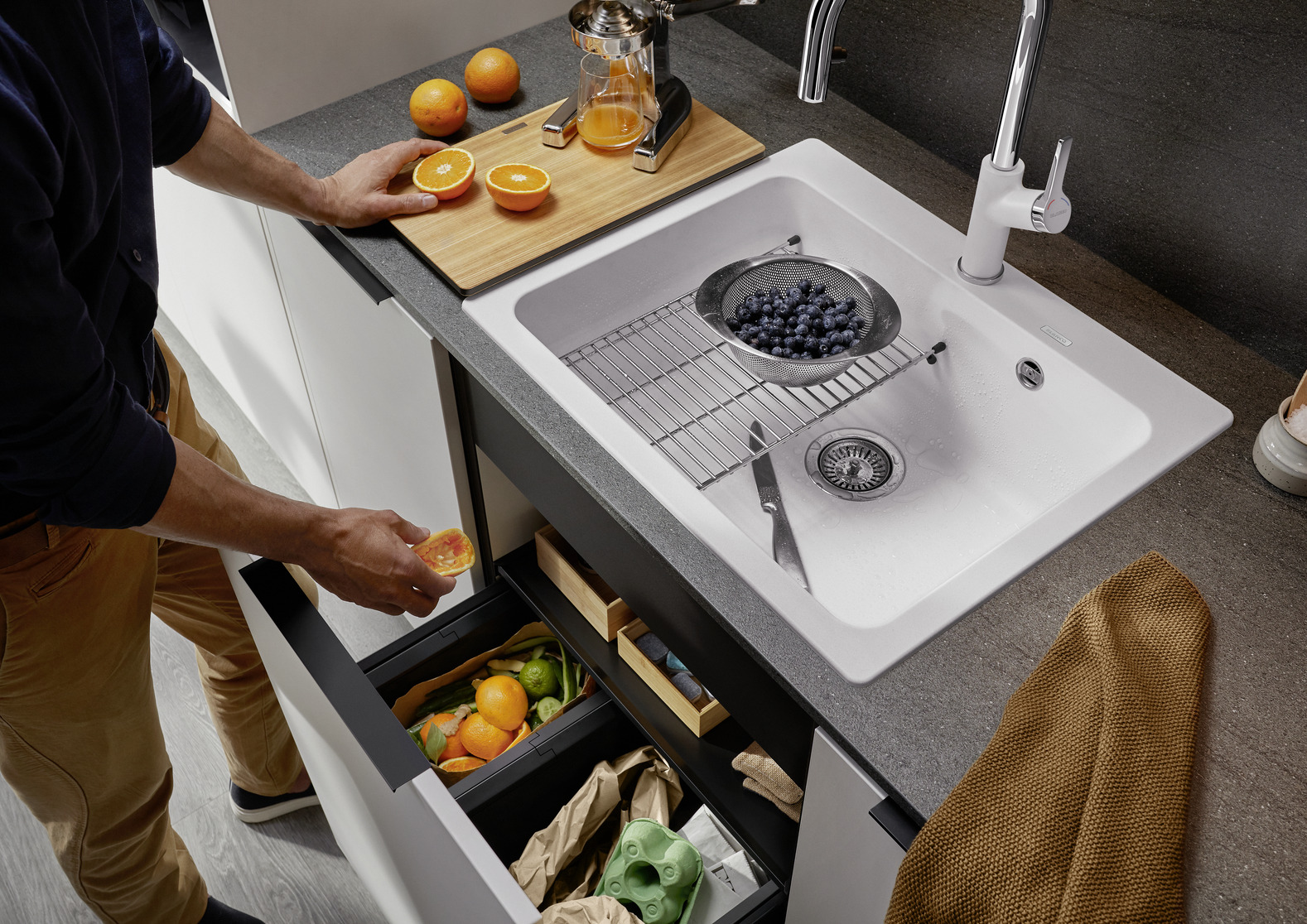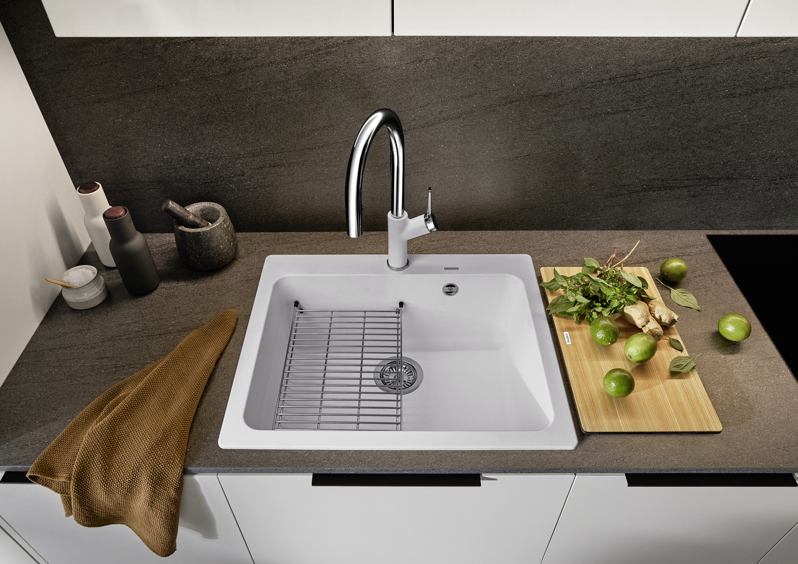 - Geräumiges, tiefes Einzelbecken mit integriertem Überlauf und durchgehender Batteriebank