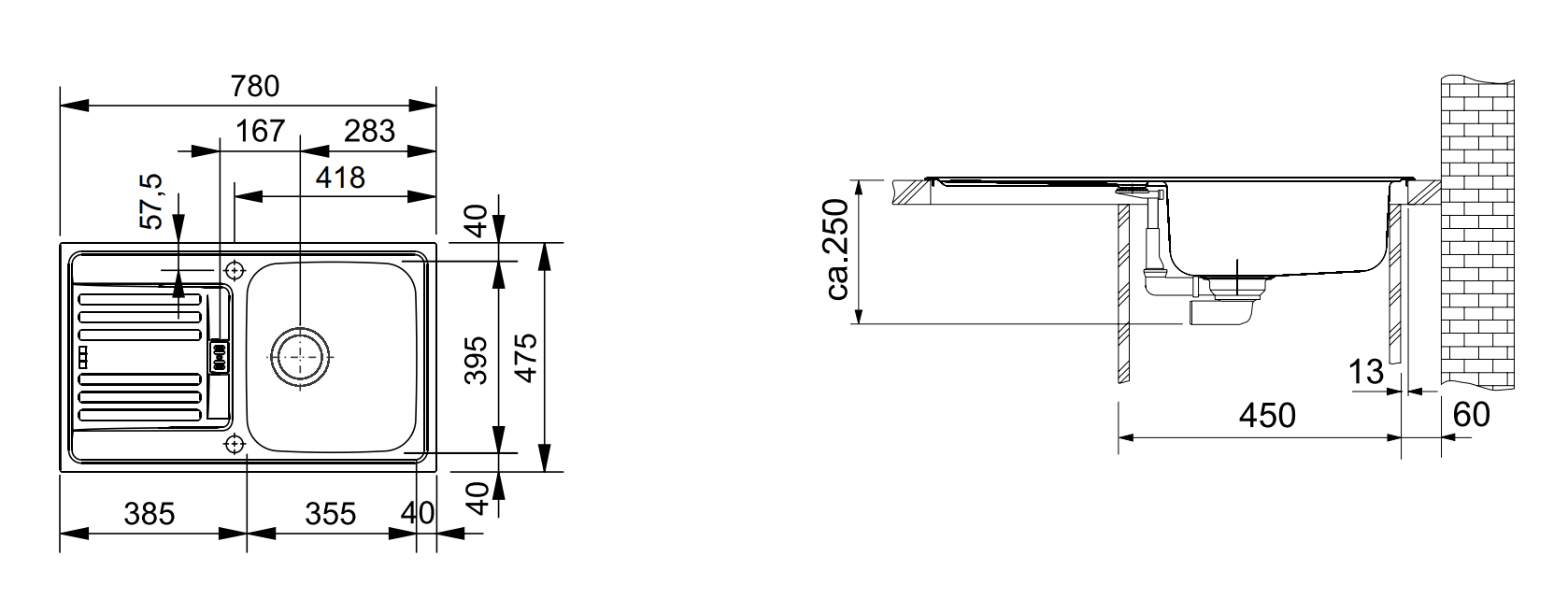 Spülenmaß: 780x475mm