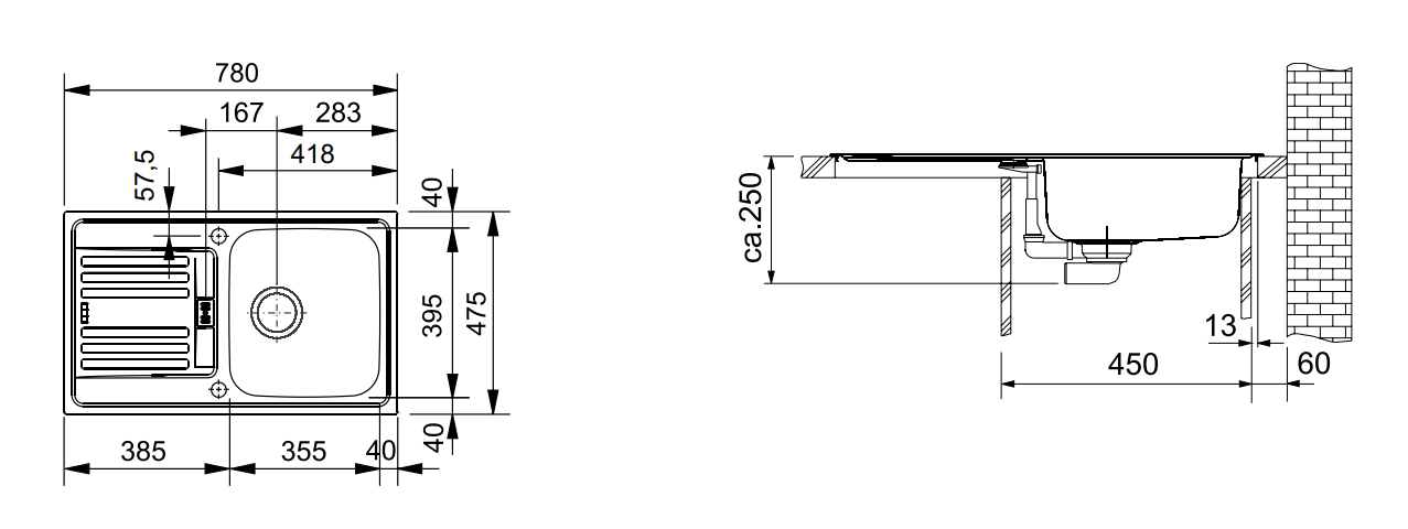 Spülenmaß: 780x475mm