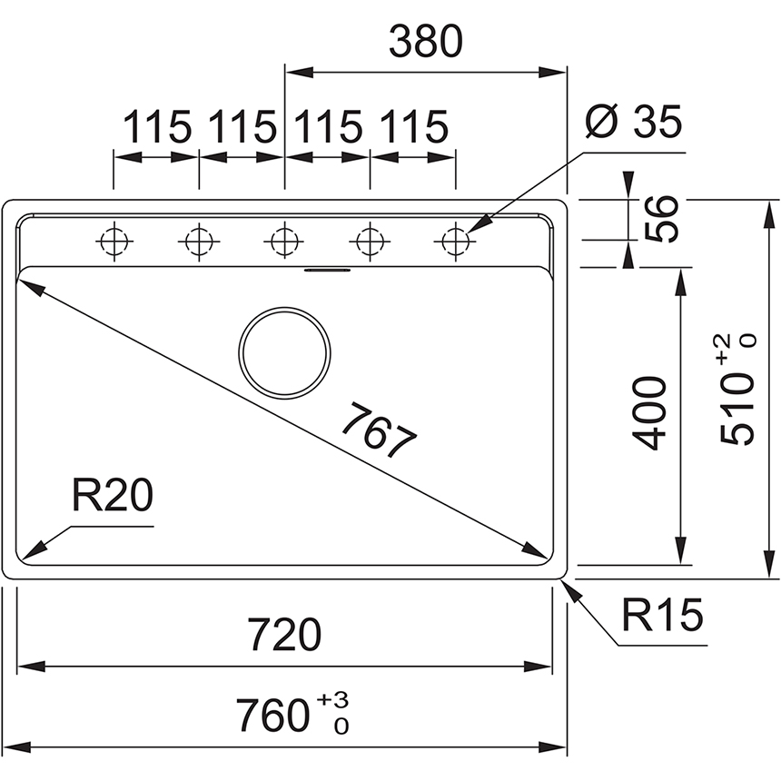 - Die abgestufte Armaturenbank und der schmale Rand fügen sich perfekt in jede Küche ein