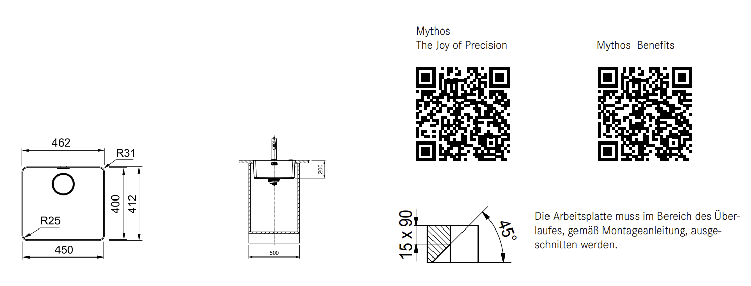- Einbauspüle Slimtop oder flächenbündig aus rostfreiem Edelstahl gebürstet