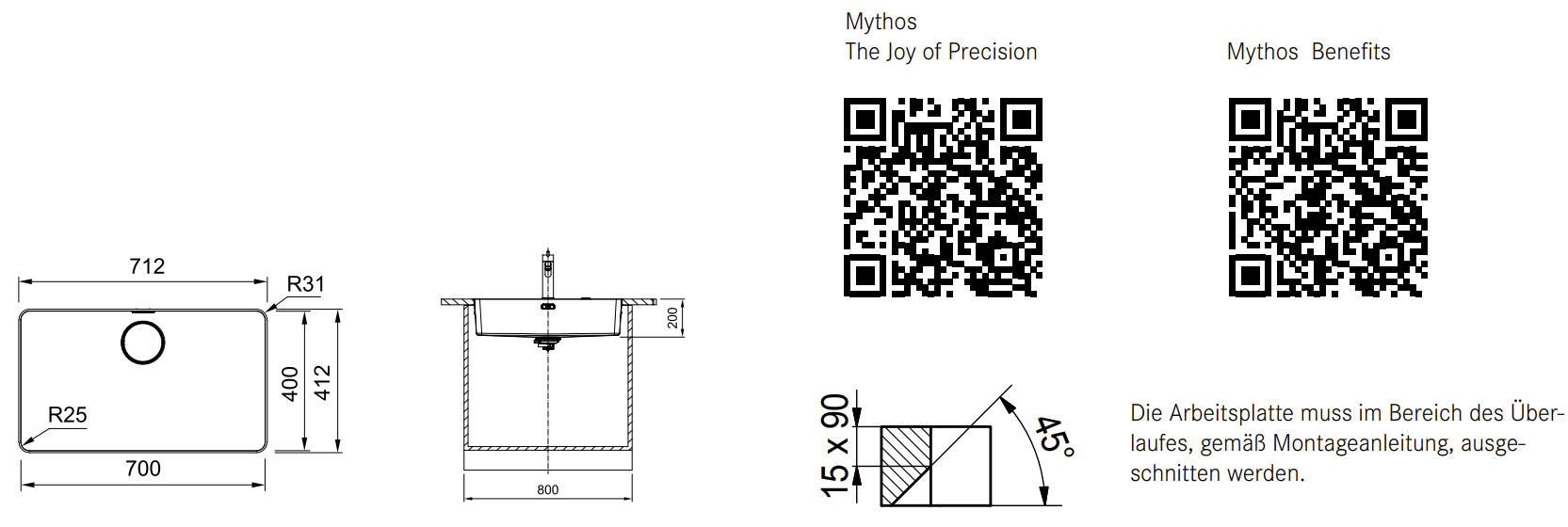 Arbeitsplattenstärke: mind. 12mm
