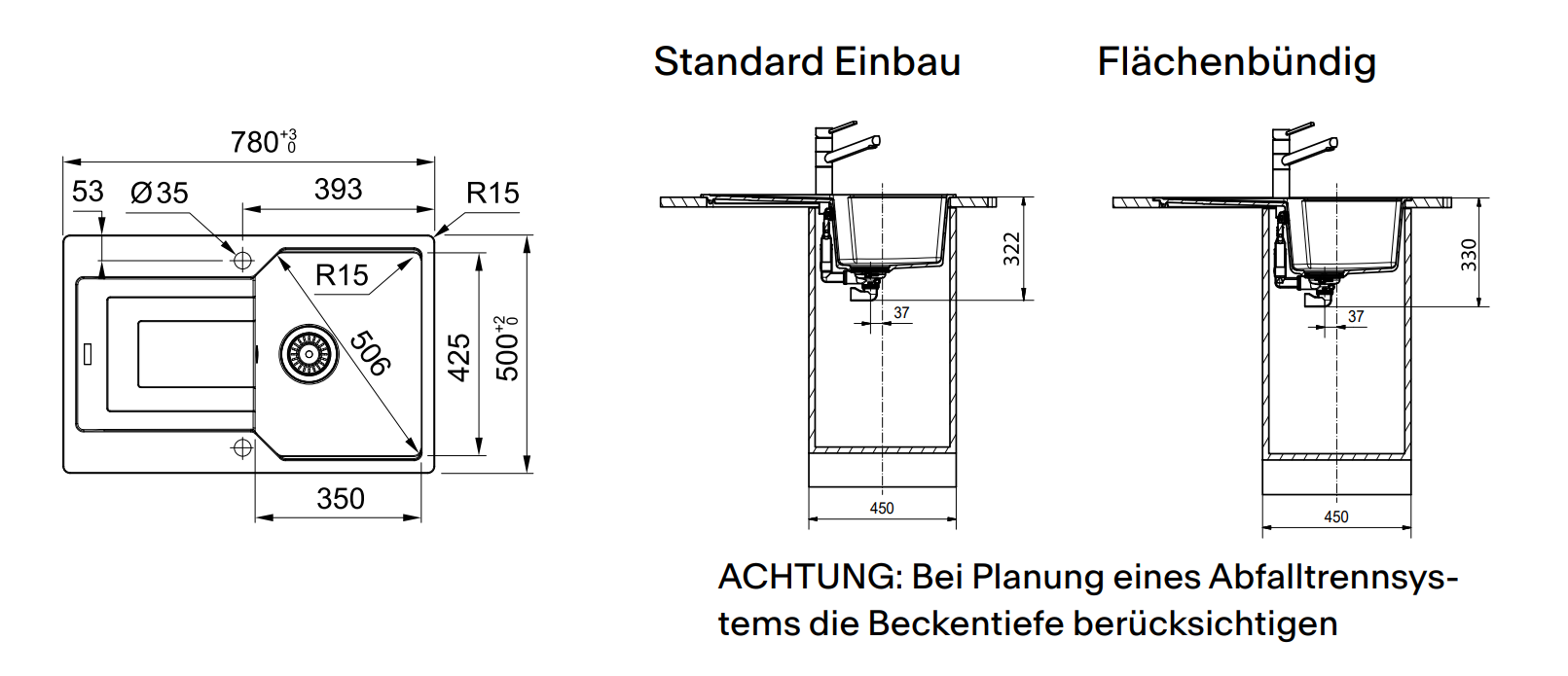 Spülenmaß: 780x500mm