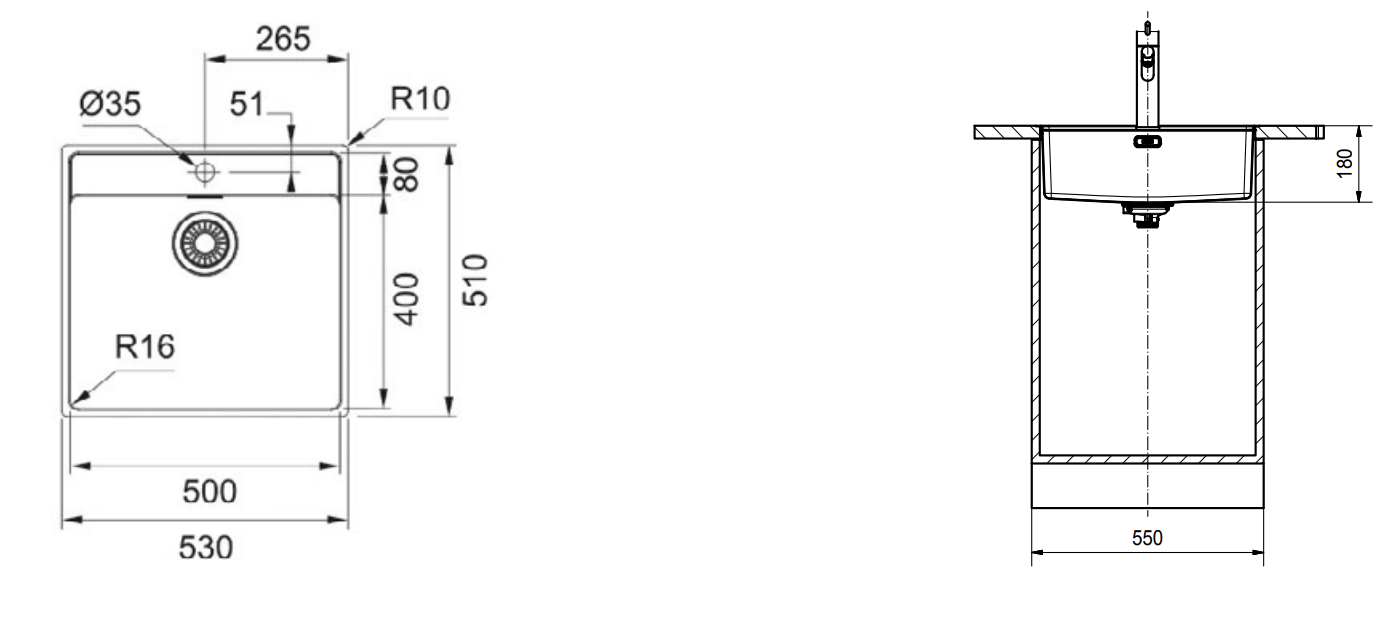 Beckenaußenmaß: 530x510mm