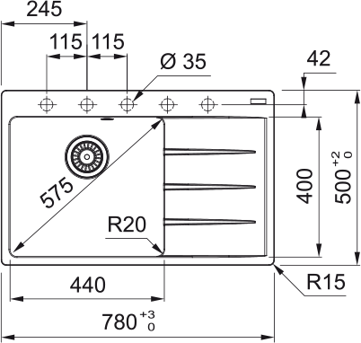 • Spülenmaß 780x500mm