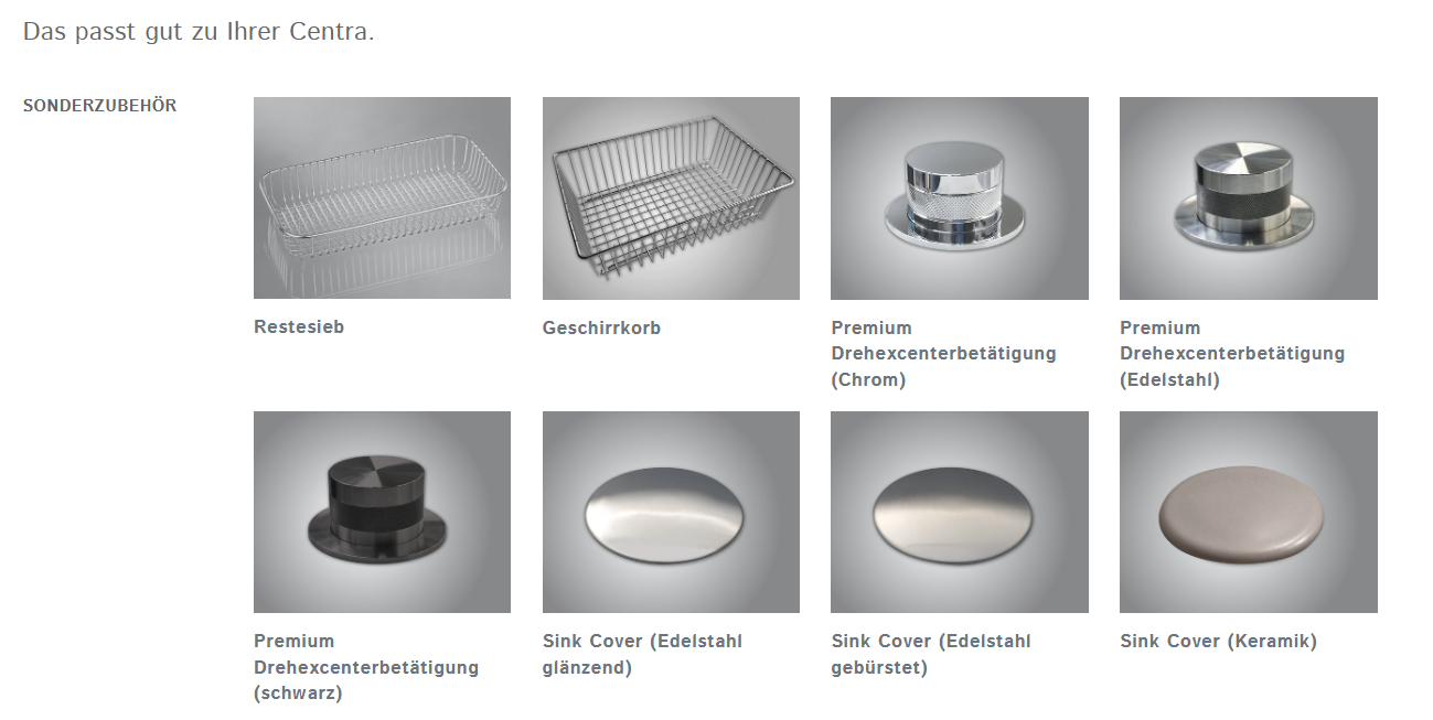 • für Arbeitsplattentiefe 600 mm inkl. Ablaufgarnitur mit Excenterbetätigung und Drehgriff Edelstahl glänzend rund Ø 45 mm