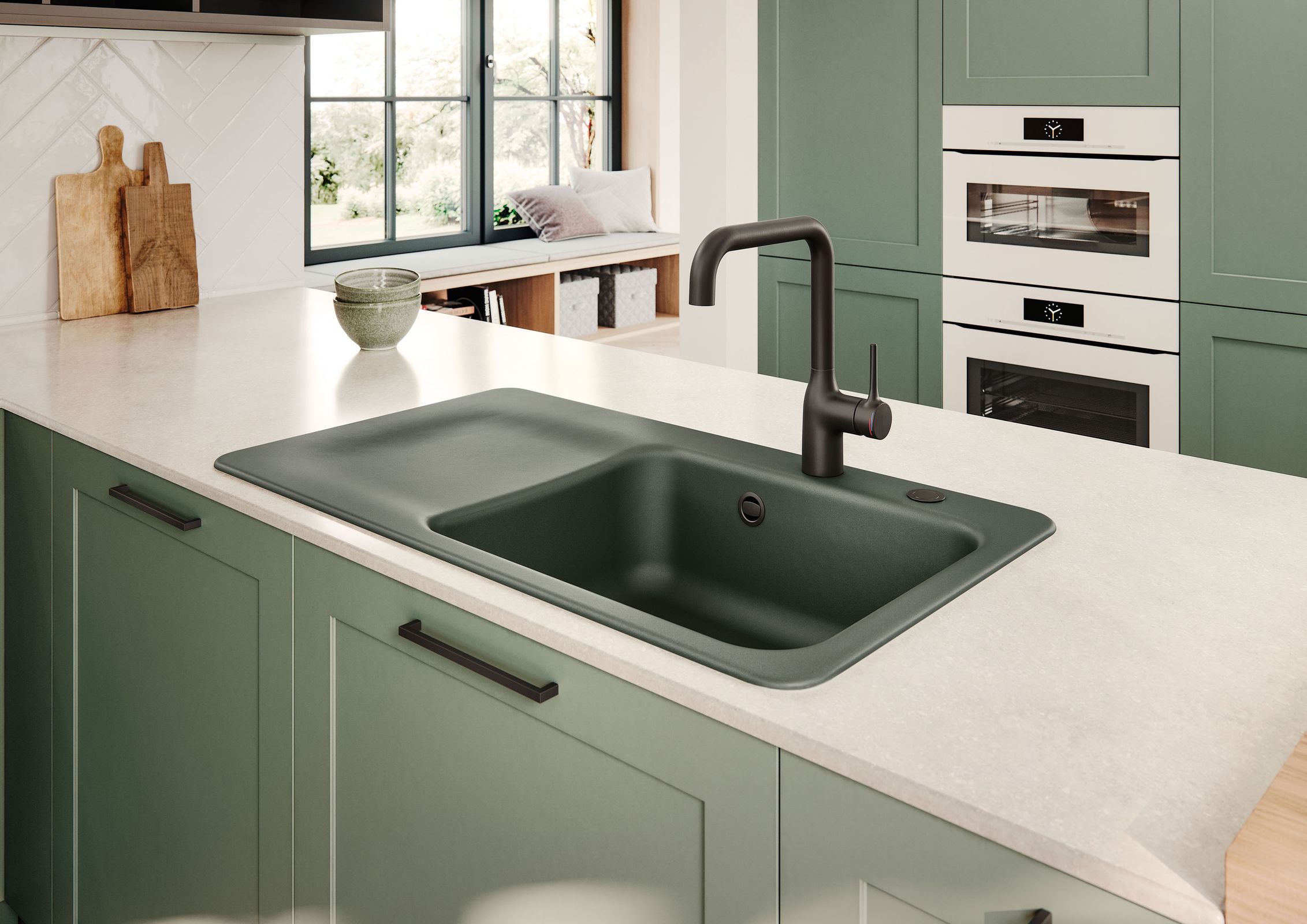 Spülbecken sind in jeder Küche unerlässlich, da sie täglich zum Reinigen und Putzen des Geschirrs genutzt werden. Es ist daher ratsam, nicht einfach irgendein Spülbecken zu wählen, sondern eines, das sowohl qualitativ hochwertig als auch stilvoll ist und zu der restlichen Kücheneinrichtung passt. Die Spülbecken von Systemceram beeindrucken mit ihrem organischen Design und der praktischen und leicht zu reinigenden Abtropffläche garantiert jeden Besucher. Zudem bieten sie eine Vielfalt an Farboptionen, die sich in jeden Einrichtungsstil einfügen sei es Polar für ein modernes Ambiente oder Jasmin für Fans des Boho-Stils. Das Spülbecken eignet sich für eine Schrankbreite von 60 cm.