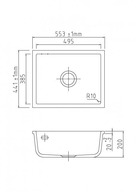 Wir empfehlen, aufgrund der Toleranzen* (± 1,5%) den Ausschnitt anhand des gelieferten Beckens zu fertigen.