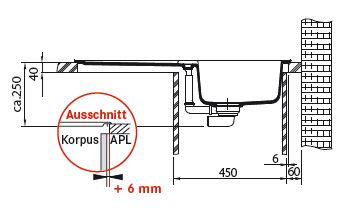 - Arbeitsplattenstärke: mind. 30mm
