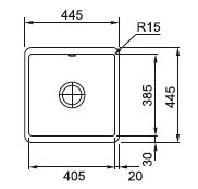 - Ausschnitt 395 x 375 mm (Eckradius 15 mm)