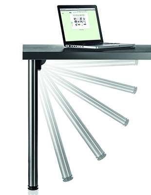- Durch die integrierte Clicktechnik kann eine Tischplatte weggeklappt werden,