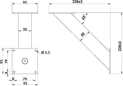 - max. Tragkraft pro Paar von ca. 30 kg bei gleichmäßig verteilter Last, bei einem max. Abstand der Konsolen von 900 mm und einem max. Überstand der Platten von 250 mm.