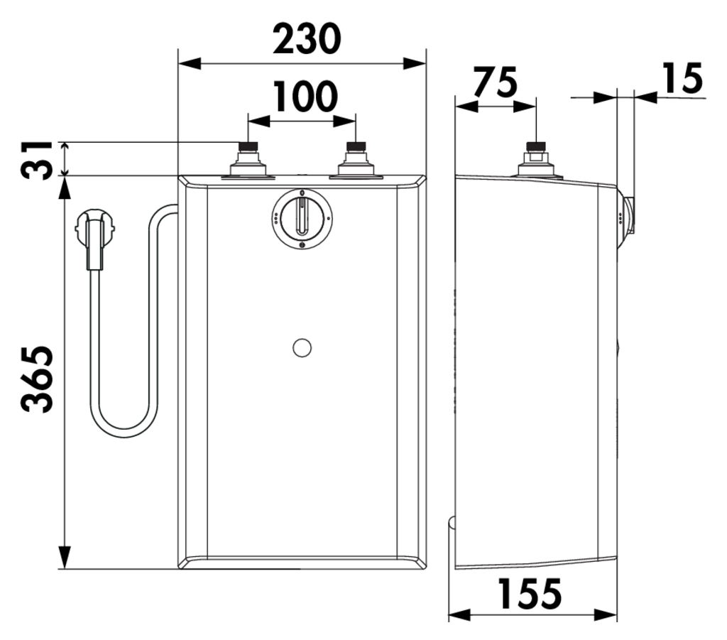Zum Anschluss von Niederdruck-Armaturen. Durch ein schnelles Aufheizen kann der Wasser- und Stromverbrauch gering gehalten werden. Platzsparender Untertischspeicher um den Raum unter der Küchenspüle anderweitig nutzen zu können.