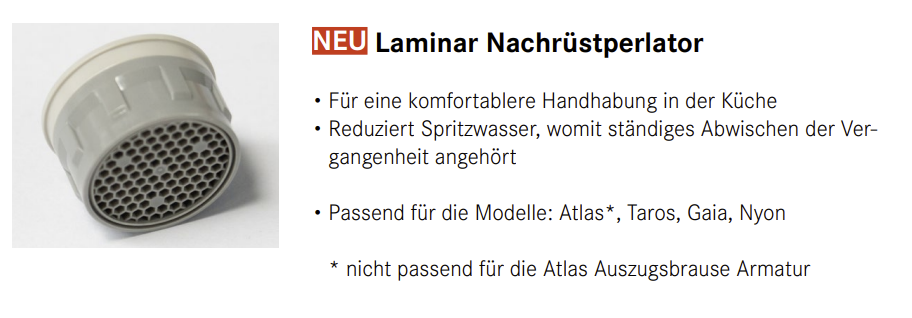 - Passend für die Modelle: Atlas* (* nicht passend für die Atlas Auszugsbrause Armatur)
