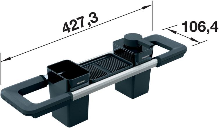 - Ausziehbarer Halter für BLANCO Becken mit einer Breite zwischen 396 mm und 440 mm