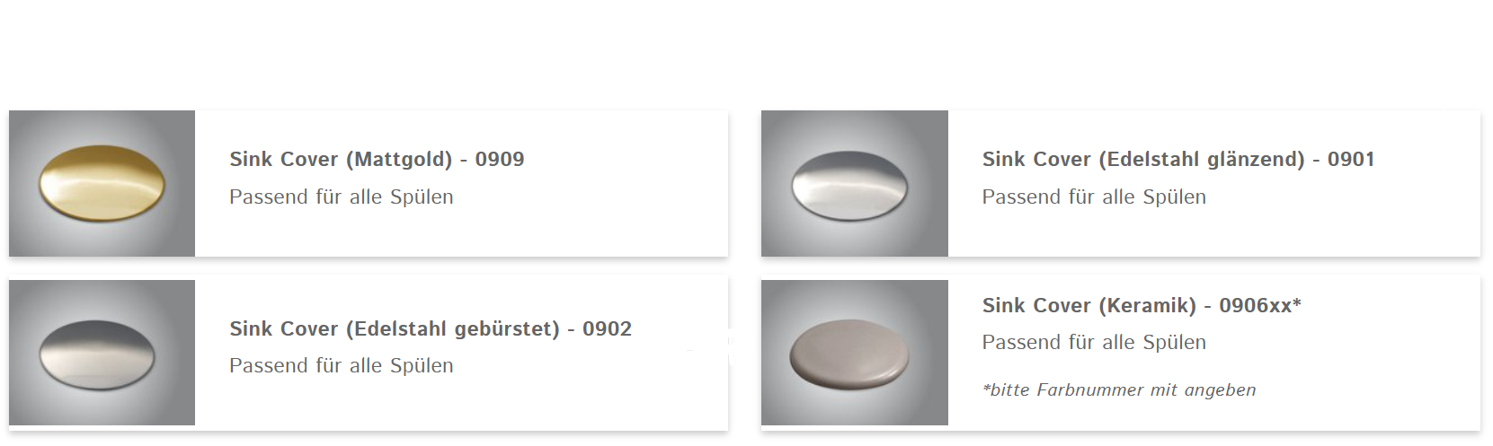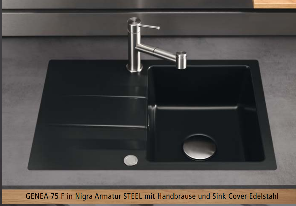 Wir haben wir uns erlaubt, das Ablaufventil mit einem keramischen Sinkcover zu adeln. Wahlweise passend in jeder unserer Spülenfarbe.