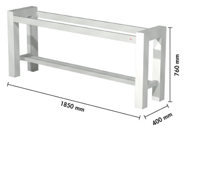 - Maße: H 760 mm, B 1850 mm, T 400 mm.