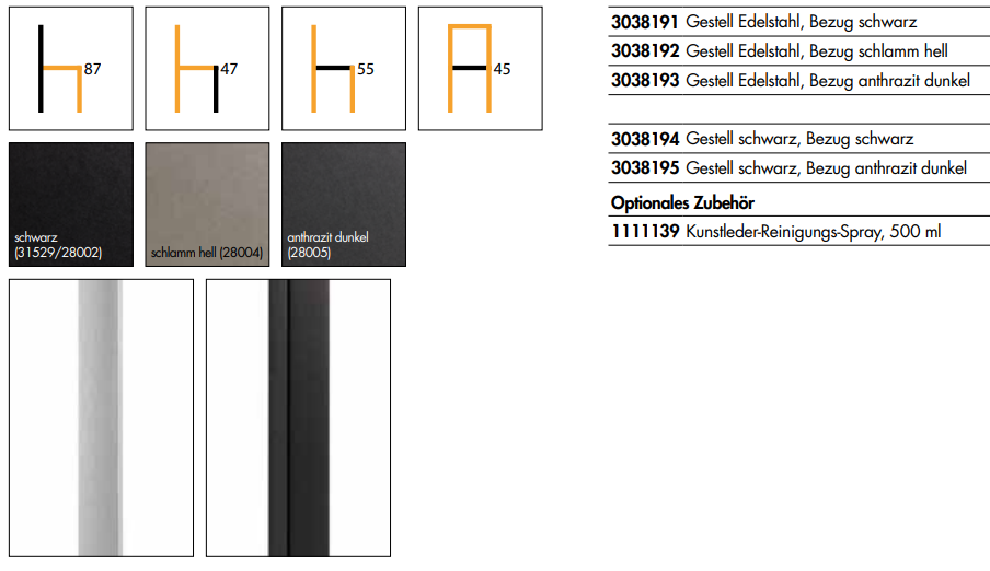 - Sitz und Rückenlehne Kunstleder gepolstert
