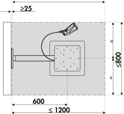 - für Tischplatte max. 1200 x 800 mm (nicht im Lieferumfang enthalten)