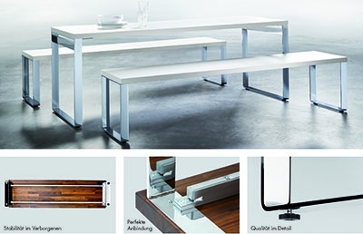 Moderne Möbel stehen in einem ständigen Prozess. Lifestyle und klassische Proportionen, gepaart mit höchster Qualität, sind Eigenschaften, die nur in ihrer Verbindung zum Erfolg führen können. Küche, Wohnen, Essen, Bad, Büro. Das Kufensystem ist universal einsetzbar für Ihre Möbel. Highend Qualität gemacht um Trends für Morgen zu setzen.