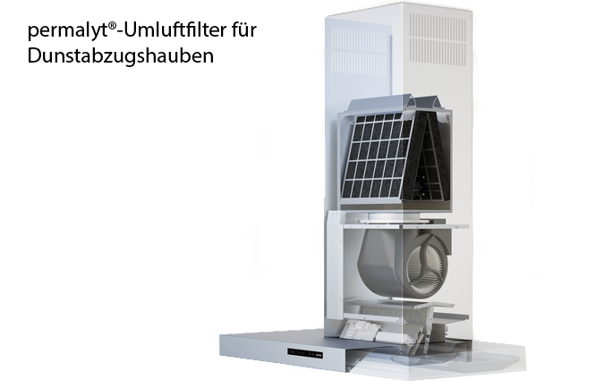 Der berbel permalyt®-Umluftfilter ist wartungsfrei: Als erstes Umluftfiltersystem regeneriert er sich selbst! Möglich macht das ein thermokatalytisches Verfahren. Die Aktivkohlefilterelemente binden bis zu 95 Prozent der Geruchsmoleküle, die beim Kochen entstehen. Einmal installiert ist die dauerhafte Funktion sichergestellt und das ganz ohne Aktivkohletausch. Der Regenerationsprozess startet nach dem Ausschalten der Dunstabzugshaube, wenn die Betriebszeit ca. 30 Minuten im Dauerbetrieb oder ca. 60 Minuten im Gesamtbetrieb erreicht.