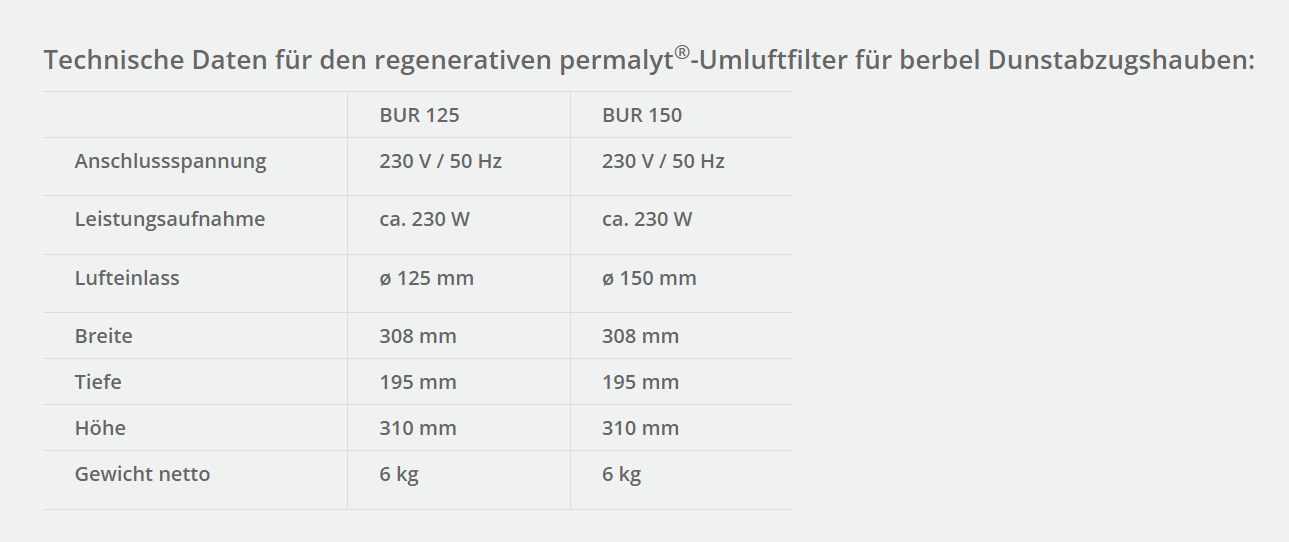BUR 150: geeignet für alle Dunstabzüge mit einem 150er Lüfterauslass