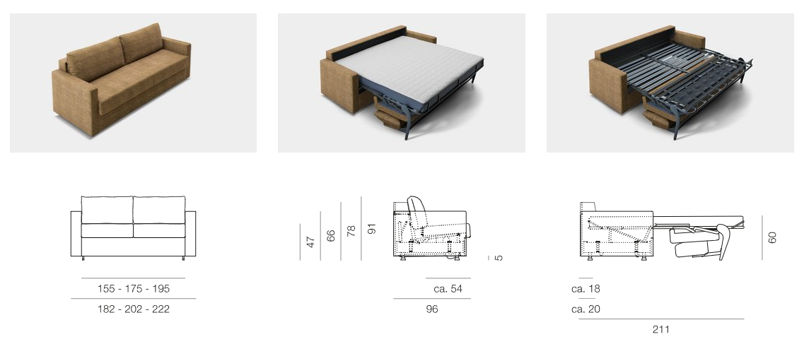 - Außenmaß 96 x 182 / 202 / 222 cm