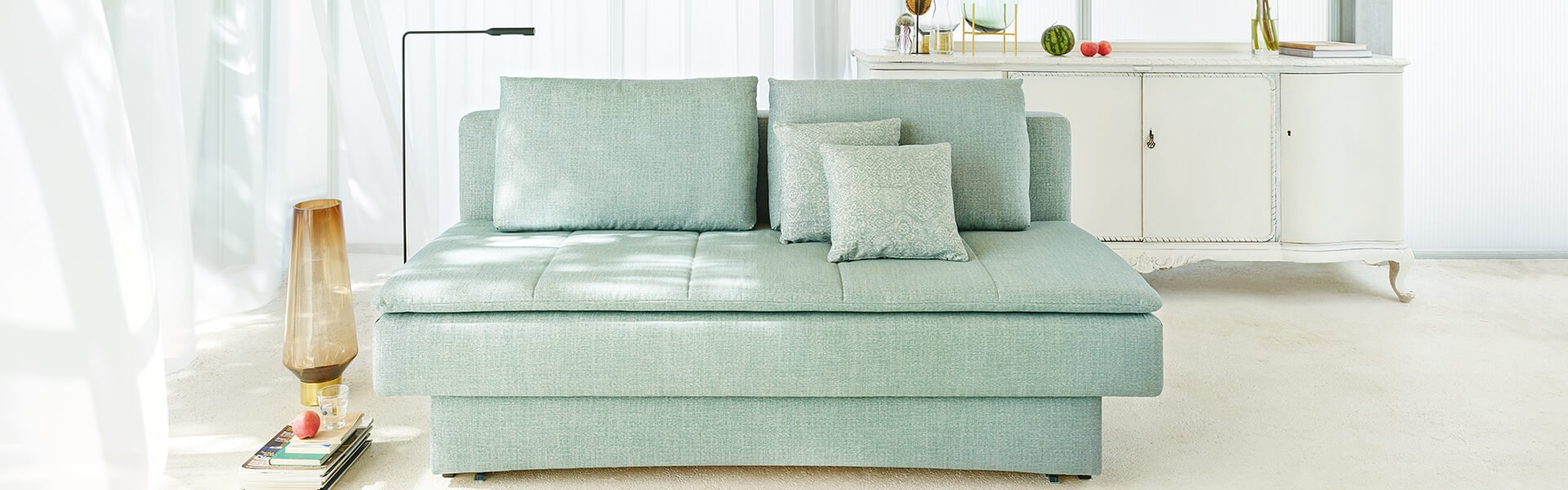 Mit Perla haben Sie ein richtig praktisches Schlafsofa zu Hause, das Ihre Gäste lieben werden. Dank des integrierten Toppers schläft und sitzt es sich nämlich gleich noch viel besser. Einfach zu bedienen ist es außerdem!